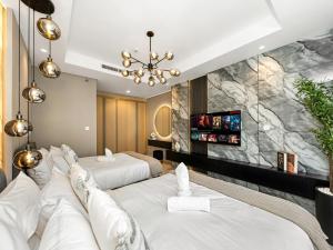 Pięciogwiazdkowy, luksusowy apartament z dwoma sypialniami i widokiem na Burj Khalifa w Business Bay w Dubaju oferuje basen infinity na dachu oraz całodobową ochronę. Ten nowoczesny apartament znajduje się zaledwie 1,4 km od Burj Khalifa i 1,9 km od Dubai Mall.
