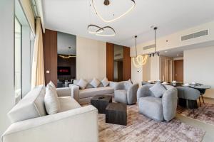 Apartament Luxury Downtown Iconic Burj View 5Min Dubai Mall położony jest w Dubaju i oferuje przestronne wnętrza z prywatnym basenem, bezpłatnym WiFi oraz bezpłatnym prywatnym parkingiem. Obiekt znajduje się zaledwie 1,1 km od Dubai Mall oraz 1,4 km od słynnego Burdż Chalifa, a z balkonu roztacza się widok na miasto.