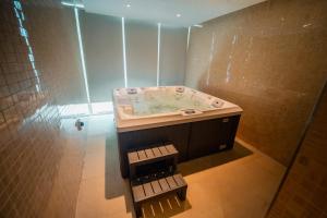 Dieses Apartment mit einem Schlafzimmer verfügt über einen Flachbildfernseher, eine voll ausgestattete Küche mit Kochnische, Minibar sowie Waschmaschine. Das Badezimmer ist mit einem Whirlpool und einer privaten Sauna für höchste Entspannung ausgestattet.