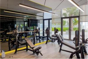 Das Apartment umfasst ein Schlafzimmer mit einem Bett sowie zwei Badezimmer mit privatem Whirlpool für zusätzliche Entspannung. Gäste können Mahlzeiten in der voll ausgestatteten Küche bzw. Kochnische zubereiten, zudem steht eine Waschmaschine im Apartment zur Verfügung. Weitere Annehmlichkeiten sind Klimaanlage und ein Flachbildfernseher.