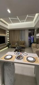 Размещение включает две спальни и три ванной комнаты с душевыми кабинками walk-in и тапочками. В гостиной установлен телевизор с плоским экраном со стриминговыми сервисами и возможностью воспроизведения видео. Для удобства гостей оборудована мини-кухня с духовкой, микроволновой печью, холодильником, минибаром, кофемашиной, принадлежностями для приготовления чая и кофе, а также обеденным столом.