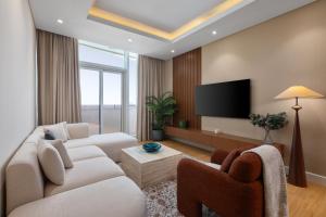 Maison Privee - Chic Downtown Living with Dubai Cityscape Views ofrece una piscina al aire libre y una sauna privada, ubicado en Dubái a pocos pasos de The Dubai Fountain y Burj Khalifa. Este apartamento cuenta con una amplia habitación con vistas al paisaje urbano y ofrece WiFi gratuito junto con aparcamiento privado gratuito.