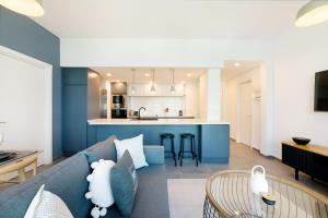 All’interno dell’appartamento spazioso si trovano due letti e un soggiorno climatizzato con TV a schermo piatto con canali via cavo. L’angolo cottura completamente attrezzato include piano cottura, frigorifero, lavastoviglie, forno, microonde, tostapane e utensili da cucina per una comoda preparazione dei pasti. Gli ospiti possono inoltre usufruire della lavatrice e delle apparecchiature per tè e caffè.