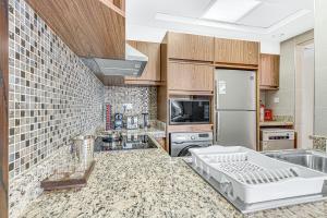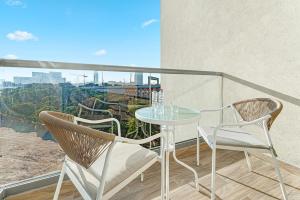 This well-equipped accommodation comprises one bedroom with a bed and air conditioning. It offers two private bathrooms complete with hairdryers and body soap. Guests can prepare meals in the full kitchen featuring an oven, stovetop, refrigerator, dishwasher, microwave as well as tea and coffee making facilities. Additional amenities include a washing machine, flat-screen TV with cable channels, wardrobe or closet space for storage along with towels and bed linens provided.