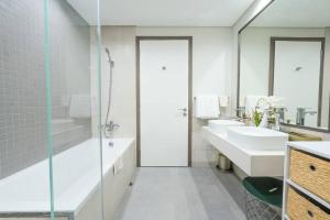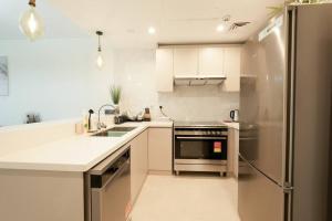 Die Unterkunft besteht aus zwei Schlafzimmern sowie drei Badezimmern und einer voll ausgestatteten Küche, ideal zur Zubereitung von Mahlzeiten während des Aufenthalts. Das Apartment ist klimatisiert und verfügt über eine Waschmaschine, einen Arbeitstisch sowie Sicherheitsausstattung wie Feuerlöscher im Zimmer und Rauchmelder.