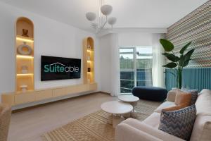 L’alloggio comprende due camere da letto separate, un soggiorno e due bagni dotati di vasca da bagno, doccia, asciugacapelli e set di cortesia con shampoo e balsamo inclusi. La cucina completamente attrezzata dispone di forno, piano cottura, microonde, frigorifero, macchina per il caffè, bollitore elettrico, tostapane e tutta la stoviglieria necessaria. Tra i comfort aggiuntivi in camera figurano aria condizionata, TV a schermo piatto con prese vicino al letto e adattatore da viaggio, ferro da stiro con asse, lavatrice, asciugatrice, cassaforte, armadio, scrivania, area salotto con divano, cuscini in piuma oltre a asciugamani e biancheria da letto forniti. Sono disponibili anche culla o lettino per bambini.