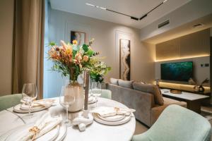 Featuring a private pool and sea views, the Modern 2-bedroom Escape is located in Dubai just 500 metres from Marina Beach and less than 1 km from The Walk at JBR. This recently renovated apartment includes one room with three beds and offers free WiFi alongside free private parking.