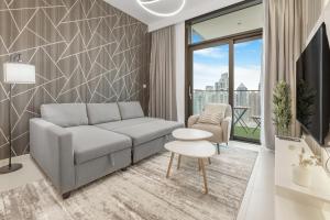 El apartamento se encuentra a pocos pasos de lugares emblemáticos como el Burj Khalifa y Dubai Mall, mientras que The Dubai Fountain está a solo 1,5 km. City Walk Mall queda a 3,8 km y el Centro de Convenciones de Dubái a 5,6 km. El Aeropuerto Internacional de Dubái se halla a 13 km.