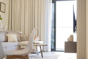 Die Wohnung verfügt über zwei separate Schlafzimmer sowie ein Wohnzimmer und insgesamt drei Betten. Es stehen zwei Badezimmer mit begehbaren Duschen und Bidets bereit. Die voll ausgestattete Küche beinhaltet Kochfeld, Kühlschrank, Kaffeemaschine, Wasserkocher, Esstisch, Tee- und Kaffeezubereitungsmöglichkeiten sowie vollständiges Küchenbesteck. Zur weiteren Ausstattung gehören Klimaanlage, Heizung, Flachbildfernseher, Waschmaschine mit Wäscheständer, Bügeleisen, Tresorfach sowie Schreibtisch und Kleiderschrank. Zudem liegen Bettwäsche und Handtücher bereit, Hausschuhe sind vorhanden, Föhn sowie Shampoo und Duschgel ergänzen das Angebot.