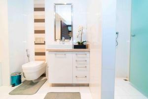 La sistemazione dispone di due camere da letto climatizzate con due letti e due bagni privati per garantire comfort e privacy. Gli ospiti possono preparare i pasti nella cucina completamente attrezzata che include sia la cucina completa sia un angolo cottura. Altri servizi della stanza comprendono una lavatrice ed intrattenimento tramite TV a schermo piatto.