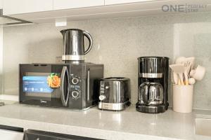 Im Modern Cozy Studio steht WLAN in der gesamten Wohnung zur Verfügung, Unterhaltung bieten zudem ein Flachbildfernseher. Zusätzliche Leistungen umfassen kostenfreie Parkplätze auf dem Gelände unter ganztägiger Sicherheitsüberwachung, ein Aufzug sorgt für Bequemlichkeit während des Aufenthalts. Die Rezeption ist rund um die Uhr besetzt.