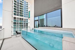 El apartamento moderno amueblado de 2 habitaciones con piscina privada en JVC, ubicado en Dubái, cuenta con piscina privada y ofrece WiFi gratuito junto con estacionamiento privado gratuito. Esta vivienda de una sola unidad incluye dos dormitorios y ofrece vistas desde su balcón y terraza.