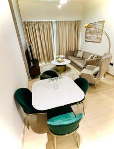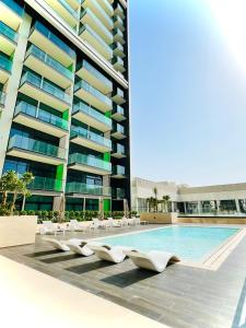 Doté d'une piscine privée, l'appartement moderne et luxueux entièrement meublé 1 chambre à coucher à Binghatt Emerald JVC offre un accès facile à JBR, Circle Mall et Dubai Hills Mall à Dubaï. Ce logement comprend un balcon ainsi qu'un parking privé gratuit pour les invités.