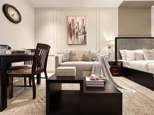 Goście mają do dyspozycji bezpłatny prywatny parking na terenie obiektu oraz windę prowadzącą bezpośrednio do apartamentu. Całodobowa ochrona gwarantuje spokój podczas pobytu. Łączność zapewnia WiFi dostępne we wszystkich pomieszczeniach wraz z adapterami podróżnymi na życzenie. Na świeżym powietrzu można korzystać z balkonu ze stolikami wypoczynkowymi i widokiem na panoramę miasta.