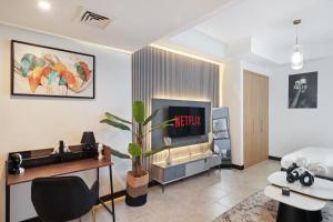Ubicado en Dubái, el Modern Studio Lake View JLT Near Marina & Metro es un apartamento bien equipado que cuenta con piscina en la azotea y WiFi gratis. Dispone de una habitación con impresionantes vistas al lago y acceso a balcón. Esta propiedad de una sola habitación incluye aparcamiento privado para los huéspedes que lleguen en coche y ofrece servicios como sauna y recepción 24 horas para mejorar su estancia.