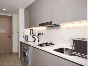 В кондиционируемой студии имеется одна спальня с одной кроватью и полностью оборудованная мини-кухня с сушилкой для одежды. В распоряжении гостей одна отдельная ванная комната с шампунем и феном. Дополнительные удобства включают утюг, сейф, стиральную машину, систему отопления, детскую кроватку по запросу и телевизор с плоским экраном.