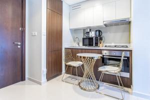 El apartamento se encuentra a 3,4 km del Burj Khalifa y a 15 km del Aeropuerto Internacional de Dubái, lo que facilita el acceso a los principales puntos de interés y conexiones de transporte.