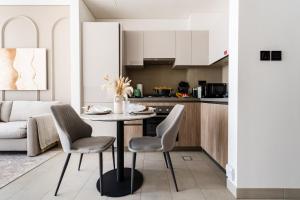 L’appartement comprend une chambre climatisée avec murs insonorisés, un salon séparé équipé d’un canapé et d’un bureau, ainsi qu’une salle de bain munie d’une douche à l’italienne, d’une baignoire, d’un bidet, d’un sèche-cheveux et de produits de toilette offerts. Le coin cuisine entièrement équipé dispose notamment d’un four, micro-ondes, réfrigérateur, grille-pain ainsi qu’une machine à café accompagnée des accessoires pour préparer thé et café. Par ailleurs, le logement est doté de linge de lit et serviettes, matériel pour repasser avec fer et planche à repasser, coffre-fort, espace penderie ou placard ainsi que lave-linge avec étendoir.