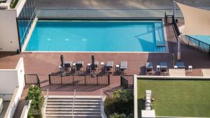 Les hôtes bénéficient également d’un accès annuel à la piscine sur le toit ainsi qu’à un espace piscine extérieur et un centre fitness. Un ascenseur dessert les étages supérieurs dont l’appartement lui-même. Une aire de stationnement privée gratuite est disponible sur place avec des places accessibles aux personnes à mobilité réduite.