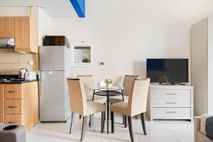 Das Apartment besteht aus einem Schlafzimmer mit Bett, Schlafsofa und Babybettoption. Die vollständig ausgestattete Küche umfasst Backofen, Herdplatte, Mikrowelle, Kühlschrank, Toaster, Wasserkocher sowie Esstisch und vollständiges Küchenzubehör. Das Badezimmer ist mit Badewanne oder Dusche ausgestattet und bietet Körperseife, Shampoo sowie Haartrockner, zudem gibt es einen Whirlpool im Zimmer sowie eine private Sauna.