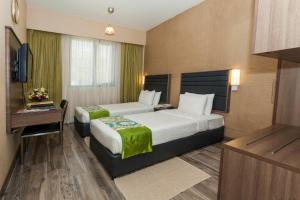 Les chambres climatisées et insonorisées de l’Oasis Deira Hôtel offrent différentes options : chambre double avec un lit, chambre twin avec deux lits ou chambre triple pour trois personnes. Chaque chambre est équipée d’une armoire, d’un coffre-fort, d’une bouilloire électrique et d’une télévision à écran plat. Les salles de bains privatives disposent de serviettes, chaussons, shampooing, savon corporel ainsi que baignoire ou douche.