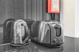 Die Unterkunft umfasst ein Schlafzimmer mit Bettwäsche sowie ein Badezimmer mit Badewanne, Dusche, Haartrockner, Shampoo, kostenlosen Pflegeprodukten und WC-Einrichtungen. Die voll ausgestattete Küche beinhaltet Herdplatte, Ofen, Mikrowelle, Kühlschrank, Geschirrspüler, Toaster und Wasserkocher sowie Tee- und Kaffeezubereitungsmöglichkeiten einschließlich vollständigem Kochgeschirr zur Mahlzeitenzubereitung. Zusätzliche Ausstattung im Zimmer sind Klimaanlage, Bügelmöglichkeiten mit Bügeleisen und -brett sowie eine Waschmaschine.
