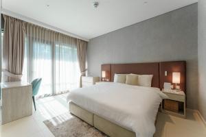 Apartmán s jednou ložnicí v oblasti Palm Jumeirah v Dubaji nabízí 1 pokoj a soukromý balkon s výhledem. Tento apartmán poskytuje venkovní bazén a bezplatné soukromé parkování, což zajišťuje pohodlný pobyt nedaleko pláže Palm West Beach.