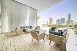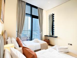 Located in the centre of Dubai, Outsider Vacation Homes - Luxe 1BR HighFlr Near Mall, Burj, Infinity Pool is a modern apartment featuring free WiFi and air conditioning. This one-room property offers river views from its terrace and balcony that doubles as an outdoor dining area.