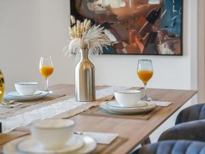 El alojamiento consta de un dormitorio independiente junto con una sala de estar amueblada con cuatro camas, incluyendo un sofá cama. Los dos baños están equipados con bañeras, duchas, artículos de aseo gratuitos y un jacuzzi privado para relajarse. Los huéspedes también disponen de plancha con tabla de planchar, lavadora-secadora, caja fuerte, escritorio para trabajar, armario ropero y cuna para bebé disponible.