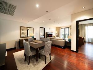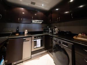 Das Apartment umfasst zwei Schlafzimmer und drei Badezimmer, jeweils ausgestattet mit Badewanne, Dusche, Haartrockner und Toilettenartikeln einschließlich Shampoo. Die voll ausgestattete Küche verfügt über moderne Geräte wie Backofen, Herdplatte, Geschirrspüler, Mikrowelle, Toaster, Kaffeemaschine und Wasserkocher sowie Küchenutensilien zur Selbstverpflegung. Weitere Ausstattungsmerkmale sind Bügelbrett mit Bügeleisen, Wäscheständer, Waschmaschine, Safe, Schreibtisch sowie Handtücher und Bettwäsche.