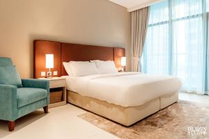 Apartmán 7-32 PALM JUMEIRAH by Design Studio v Dubaji se nachází pouhých 400 metrů od pláže Palm West Beach a nabízí prostorné klimatizované ubytování s bezplatným WiFi a balkonem. Tento jednokamerový apartmán má k dispozici střešní bazén a výtah.