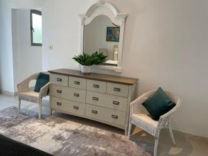 Ta obszerna willa posiada sześć sypialni i sześć łazienek wyposażonych w bezpłatne kosmetyki, bidety, wannę lub prysznic, suszarkę do włosów, szlafroki oraz dodatkowe toalety. W każdym pokoju zapewniono pościel i ręczniki oraz telewizor z płaskim ekranem. W pełni wyposażona kuchnia zawiera płytę grzewczą, piekarnik, lodówkę, mikrofalówkę, toster, ekspres do kawy i czajnik elektryczny wraz ze sprzętem kuchennym ułatwiającym przygotowanie posiłków.