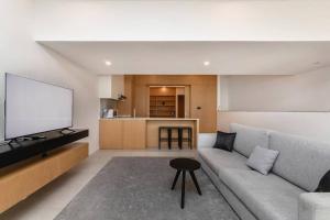 The air-conditioned apartment comprises one bedroom with one bed, a fully equipped kitchen for cooking needs, and a private bathroom. Additional room amenities include a washing machine, baby cot or crib availability, and a work desk. Entertainment options feature a flat-screen TV along with internet services ensuring seamless connectivity.
