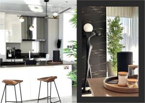 Das Apartment verfügt über zwei Schlafzimmer sowie drei Badezimmer mit Badewannen und Duschen. Zudem ist eine private Sauna vorhanden. Zur Ausstattung gehören Klimaanlage, Bettwäsche, Handtücher, Bügeleisen, Kleiderschrankraum, Safe sowie Sitzbereich und Sofa. Ein Babybett steht ebenfalls zur Verfügung. Die voll ausgestattete Küche beinhaltet Backofen, Herdplatte, Kühlschrank, Geschirrspüler, Kaffeemaschine und Mikrowelle für komfortables Kochen.