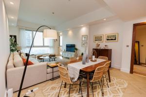 La cucina completamente attrezzata include elettrodomestici moderni quali forno, piano cottura, frigorifero, lavastoviglie, microonde macchina del caffè e tostapane oltre ad angolo cottura per tè e caffè completo di utensili. Tra i servizi aggiuntivi figurano prodotti da bagno gratuiti nel bagno (accappatoi compresi), shampoo, balsamo e asciugacapelli, servizio lavanderia, ascensore, parcheggio privato gratuito in loco, mobili per la ristorazione all’aperto su balcone o patio per garantire il massimo comfort durante il soggiorno.