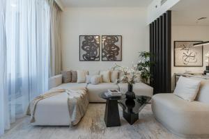 Apartmán Panoramic Sea View 2BR v Forte Downtown - Allsopp&Allsopp se nachází v srdci Dubaje a nabízí bezplatné Wi-Fi, klimatizaci a domácí vybavení včetně myčky nádobí a kávovaru. Ubytování zahrnuje jeden pokoj s výhledem na moře, soukromé parkování zdarma a recepci otevřenou 24 hodin denně pro pohodlí hostů.