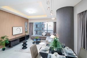 Die Wohnung Paramount Hotel mit atemberaubendem Blick auf den Burj Khalifa befindet sich in Dubai und verfügt über einen Balkon mit spektakulärer Aussicht. Das Apartment bietet Zugang zu einem ganzjährig nutzbaren Außenpool sowie kostenfreie private Parkplätze und WLAN.