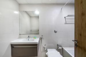 Apartmán má dvě ložnice a dvě koupelny vybavené sprchovými kouty typu walk-in a bezplatnými toaletními potřebami. Uvnitř najdete plně vybavený kuchyňský kout s troubou, mikrovlnnou troubou, varnou deskou, lednicí, rychlovarnou konvicí, toustovačem a jídelním stolem. Další vybavení zahrnuje klimatizaci, pračku se sušičkou na prádlo, žehličku, sedací soupravu i zvukotěsné pokoje pro klidný pobyt.