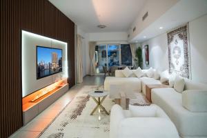 Położony w Dubaju, apartament PJ- Luxury Palm Jumeirah Beachfront oferuje przestronne, 1-pokojowe zakwaterowanie z zachwycającym widokiem na morze i ogród z tarasu oraz balkonu. Do dyspozycji gości jest odkryty basen, sauna oraz jacuzzi zapewniające pełen relaks. Na terenie obiektu dostępny jest bezpłatny prywatny parking oraz bezpłatne WiFi.