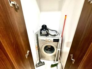 Apartmán zahrnuje jednu ložnici se dvěma postelemi a dvě koupelny pro větší pohodlí. Hosté mohou využít plně vybavenou kuchyň s kuchyňským koutem i celou kuchyňskou linkou. K dispozici je klimatizace, pračka a pracovní stůl pro vyšší komfort.