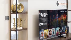 PREMIER 1BR - Widok na Burj Khalifa to dom wakacyjny w Dubaju, oferujący prywatny basen oraz widok na jezioro. Obiekt znajduje się 11 km od Dubai World Trade Centre. Klimatyzowany apartament typu studio dysponuje jednym pokojem z balkonem i zapewnia bezpłatne WiFi oraz bezpłatny prywatny parking.