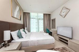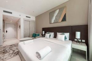 Apartmán Private Beach Palm Jumeirah Studio ve vyšším patře v Dubaji nabízí soukromý bazén a balkon s výhledem, nachází se pouhých 600 metrů od pláže Palm West Beach. Tato jednopokojová jednotka má k dispozici bezplatné soukromé parkování i WiFi.