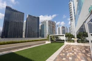 Cet appartement climatisé dispose d'une chambre ainsi que d'une salle de bains équipée d'une douche et d'un bidet. Les hôtes bénéficient d’un coin cuisine entièrement équipé avec four, plaque de cuisson, réfrigérateur, micro-ondes, machine à café, bouilloire électrique et grille-pain ainsi que tous les ustensiles nécessaires. Parmi les autres équipements figurent un coffre-fort, une armoire ou penderie, un fer et une planche à repasser accompagnés d’un étendoir pour vêtements ainsi que le linge de lit et les serviettes. Une machine à laver vient compléter l’ensemble pour plus de commodité. Un téléviseur écran plat agrément la pièce principale qui s’ouvre sur un balcon offrant une vue sur la ville.