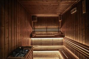 L’appartamento comprende una camera da letto climatizzata con riscaldamento e lavatrice per maggiore comodità. La cucina completamente attrezzata consente di preparare e conservare i pasti ed è affiancata da due bagni, uno dei quali dotato di sauna privata in camera. Per l’intrattenimento è disponibile una TV a schermo piatto.