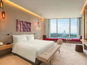 Варианты размещения варьируются от номеров Deluxe с большими двуспальными кроватями и видом на море или город до Junior Suites с отдельными жилыми зонами. Во всех номерах имеется как минимум один 48-дюймовый телевизор с плоским экраном, зоны для отдыха, рабочие столы, шкафы для одежды, мини-бары, кофемашины, электрические чайники и холодильники. Ванные комнаты отличаются значительной просторностью: душевые кабины типа «лесной дождь» или душевые без порога сочетаются с ваннами, стандартно предоставляются халаты, тапочки и бесплатные туалетные принадлежности. Некоторые люксы оснащены дополнительными удобствами — звукоизоляцией, эспрессо-машинами и Apple TV.