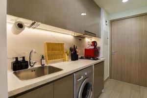 Ce studio climatisé comprend un coin salon avec télévision à écran plat et un lave-linge. Vous pourrez préparer vos repas dans le coin cuisine entièrement équipé comprenant plaque de cuisson, réfrigérateur, micro-ondes, grille-pain, bouilloire électrique ainsi que tous les ustensiles nécessaires. Le logement dispose aussi de linge de lit, serviettes, fer à repasser, espace penderie et étendoir.