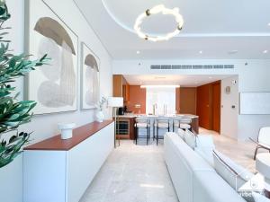 Die Unterkunft Seafront Serenity Palm Escape mit Poolzugang ist eine großzügige Wohnung in Dubai, nur 500 Meter vom Frond E Beach entfernt. Das Apartment mit einem Zimmer verfügt über zwei Badezimmer und einen Balkon mit Meerblick sowie Zugang zum Swimmingpool.