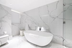 Accommodation comprises three bedrooms and three bathrooms equipped with bathrobes, slippers, complimentary toiletries including shampoo and conditioner, as well as both bathtubs and showers. Guests benefit from air conditioning in all rooms alongside soundproofing for added privacy. In-room amenities include a fully equipped kitchen featuring a stovetop, refrigerator, dishwasher, oven, microwave, toaster and coffee machine plus tea making facilities, seating areas, flat-screen TV with streaming services, safe deposit box, ironing facilities, washing machine, wardrobe space, rollaway bed options, baby cot availability, heating, work desk and alarm clock.