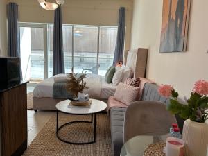 Апартаменты с кондиционером, балконом и собственными оздоровительными удобствами Serviced Studio Near Burj Khalifa расположены в Дубае, всего в 700 метрах от центра города и менее чем в 1 км от фонтана Дубай. В апартаменте одна комната с двумя кроватями, из которой открывается вид и есть выход на террасу.