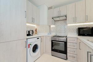 L’unità climatizzata dispone di una camera da letto separata con due letti, un soggiorno e un angolo cottura completamente attrezzato con utensili da cucina, forno, lavastoviglie, frigorifero, microonde, bollitore elettrico oltre a tè e caffè. Tra i comfort aggiuntivi figurano ferro e asse da stiro, biancheria da letto, lavatrice e bagno privato fornito di shampoo.